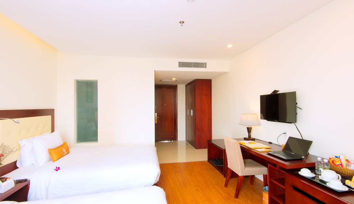 The light and spacious 30 meter Rooms feature contemporary decor, twin beds, a large bathroom with shower, workstation, 32" LCD TV, free Wi-Fi access, in-room safe, refrigerator, and tea and coffee-making facilities.