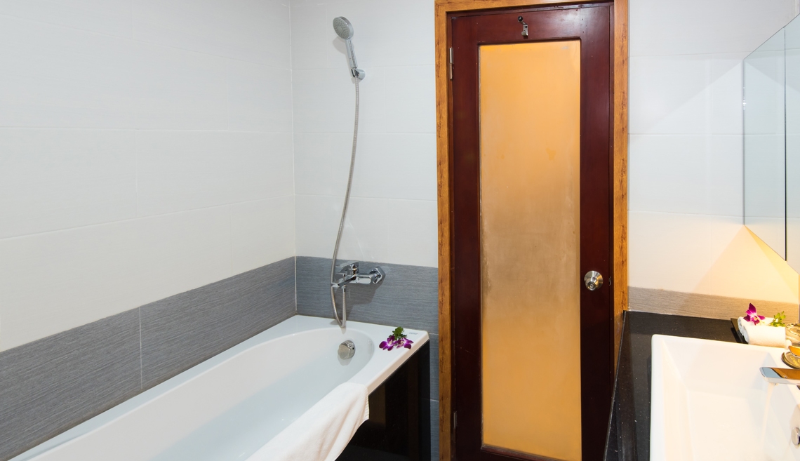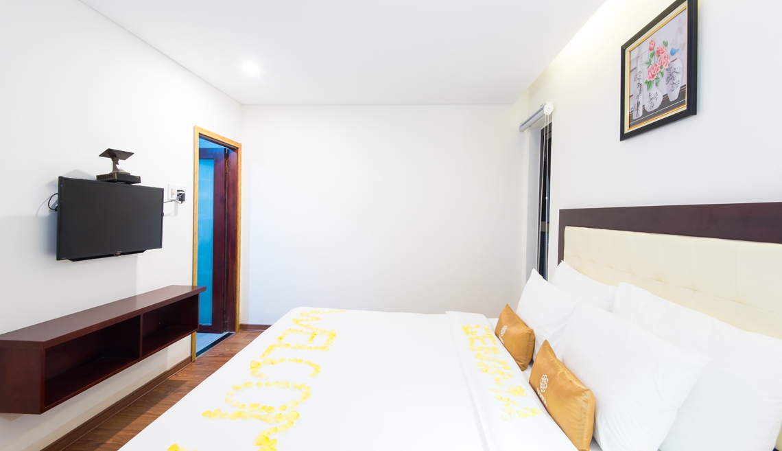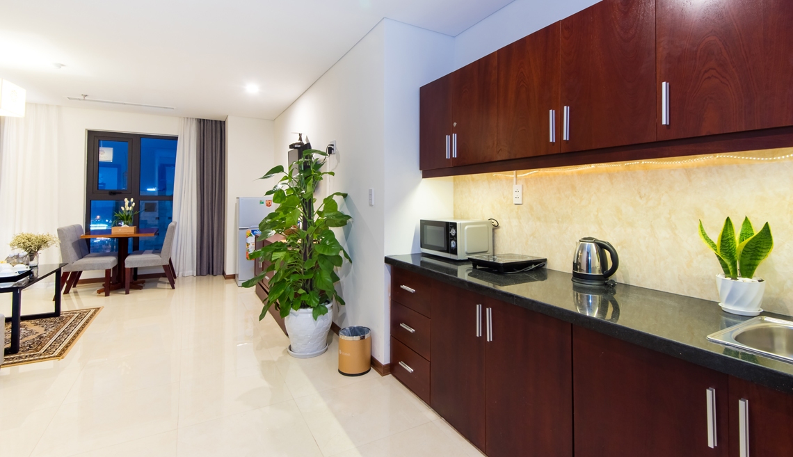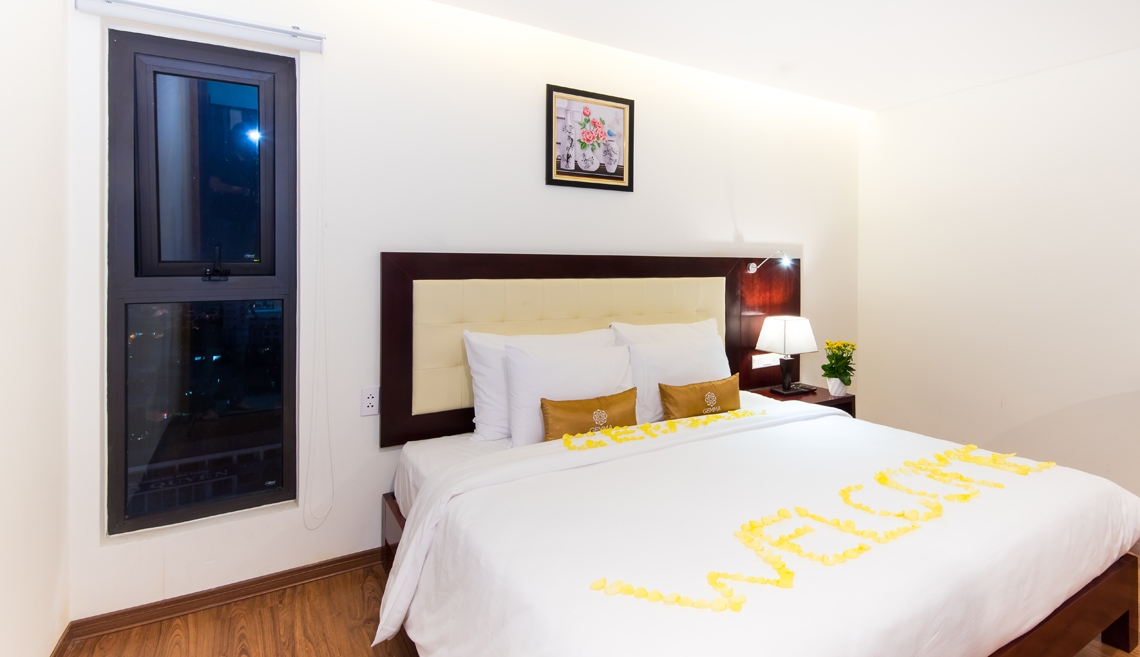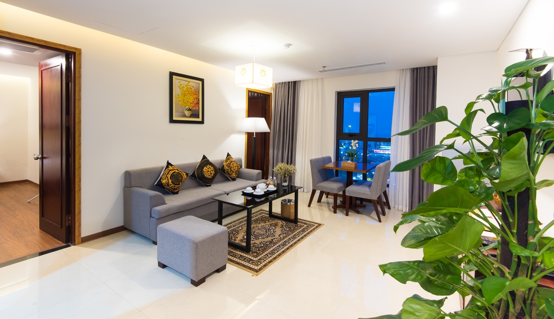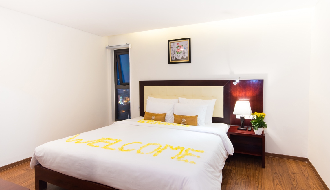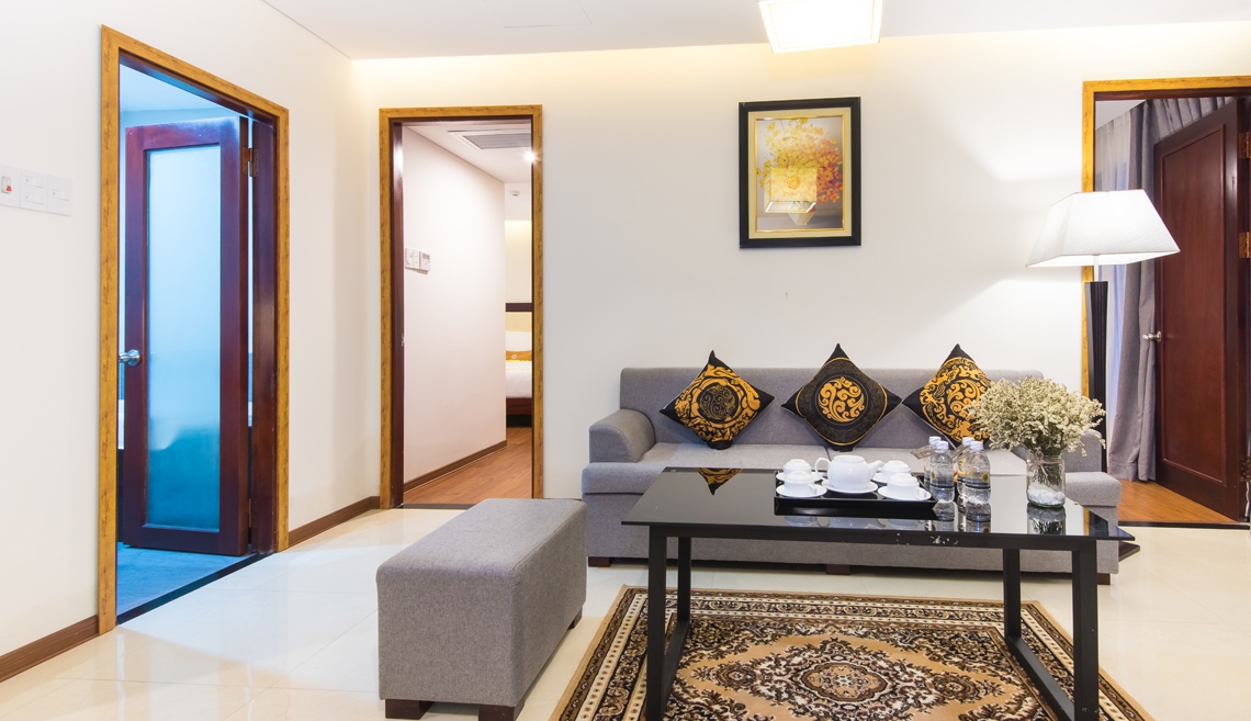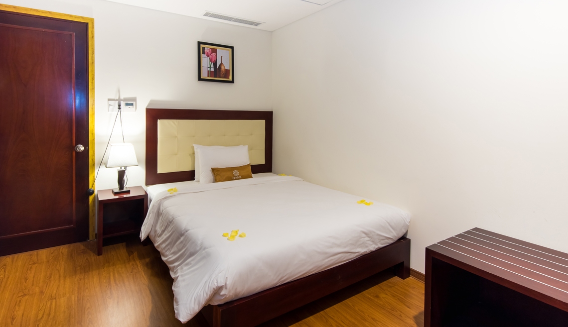 The light and spacious 75 meter Rooms feature contemporary decor, 02 bed room with 2 king-sized beds , 2 large bathroom with shower, workstation, two 32" LCD TV, free Wi-Fi access, in-room safe, refrigerator, and tea and coffee-making facilities and kitchen.