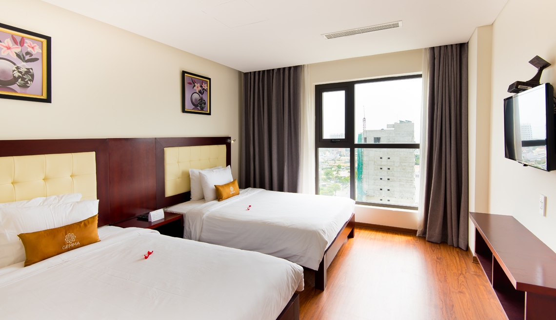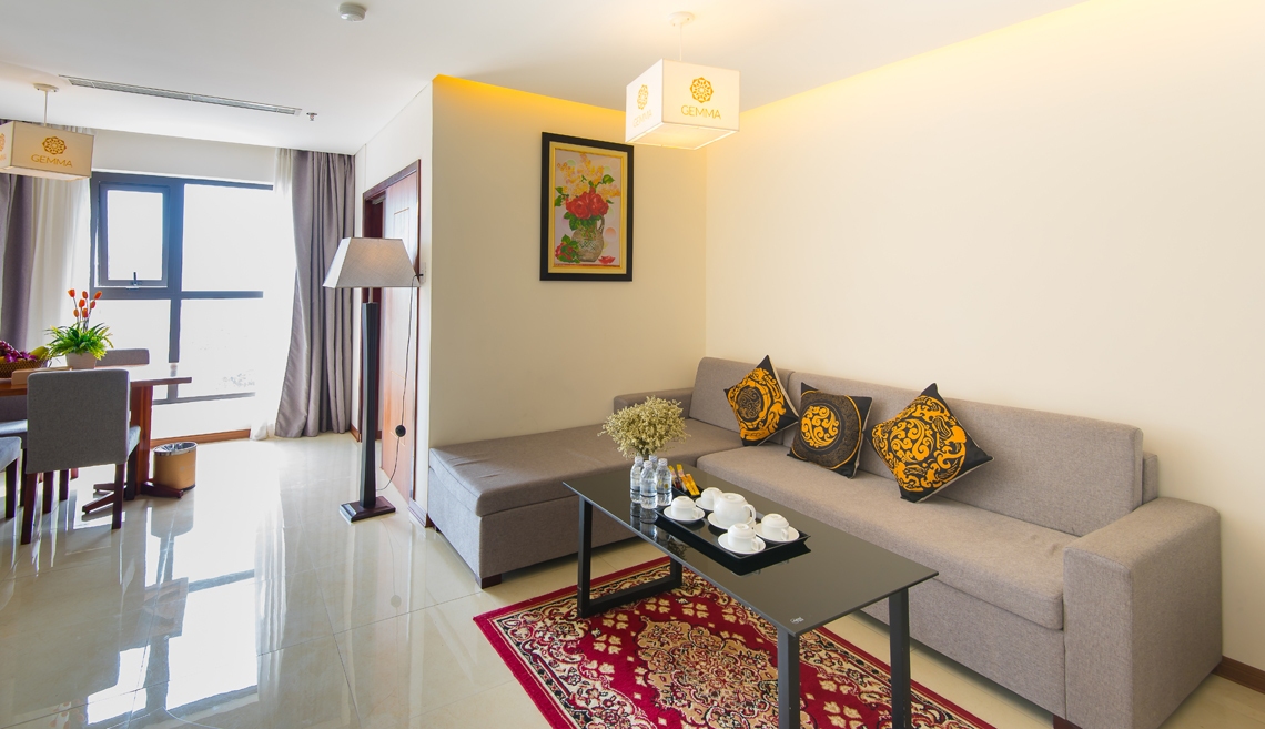 The light and spacious 85 meter Rooms feature contemporary decor, 2 bedrooms : 01 twin beds, 01 king-sized bed,02 large bathroom with shower, workstation, 32" LCD TV, free Wi-Fi access, in-room safe, refrigerator, and tea and coffee-making facilities and kitchen.