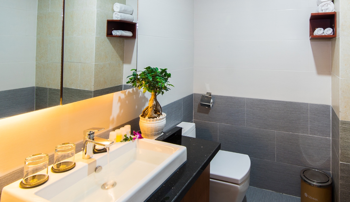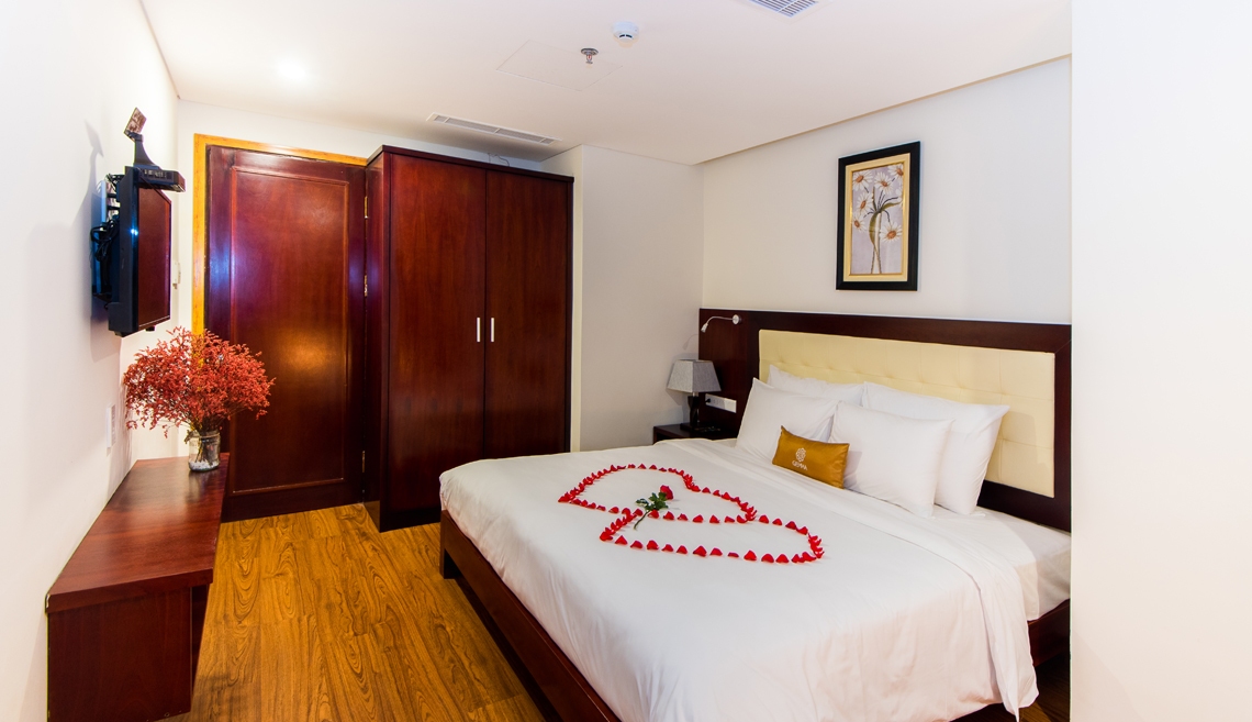The light and spacious 60 meter Rooms feature contemporary decor, 01 bed room with king-sized beds and 1 extra bed, 1 large bathroom with shower, workstation, two 32" LCD TV, free Wi-Fi access, in-room safe, refrigerator, and tea and coffee-making facilities , kitchen .